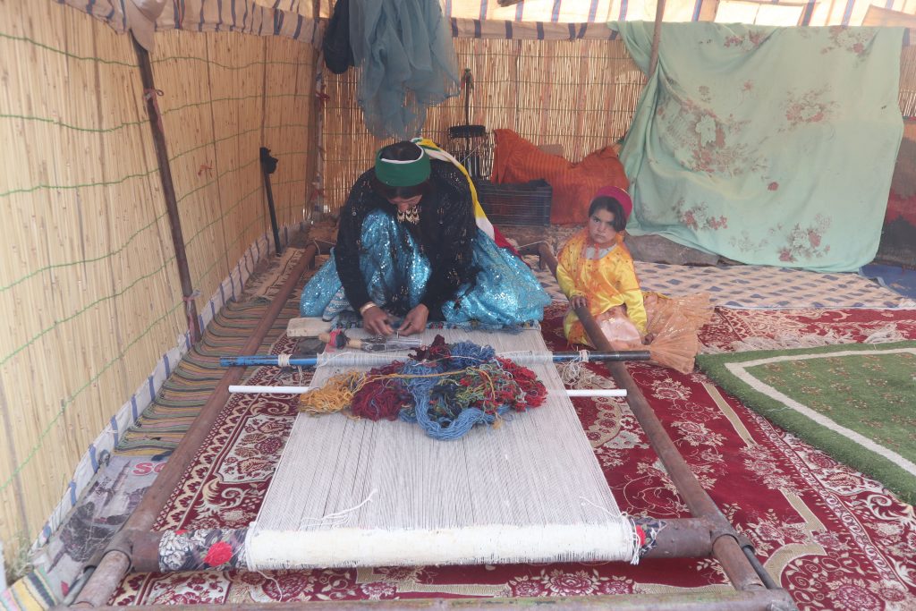 アートギャッベはイランの南西部に伝わる遊牧民族の暮らしから生まれた手織りのじゅうたんです。植物の根っこや、果物の皮などを伝統の草木染めでウールを染め、指で一本一本糸を結んでつくられる伝統工芸品。本場イラン南西部の織りの技術はユネスコの無形文化遺産にも登録されています。
