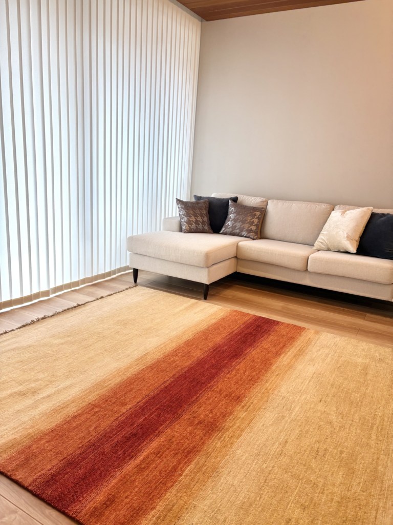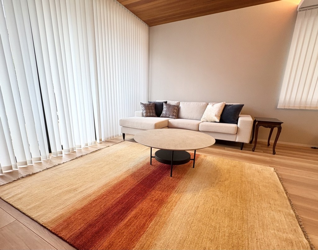 わり、足触りがとても気持ちがよかったところです。実際にリビングに敷いてみると空間が一気に明るく温かみのある雰囲気に