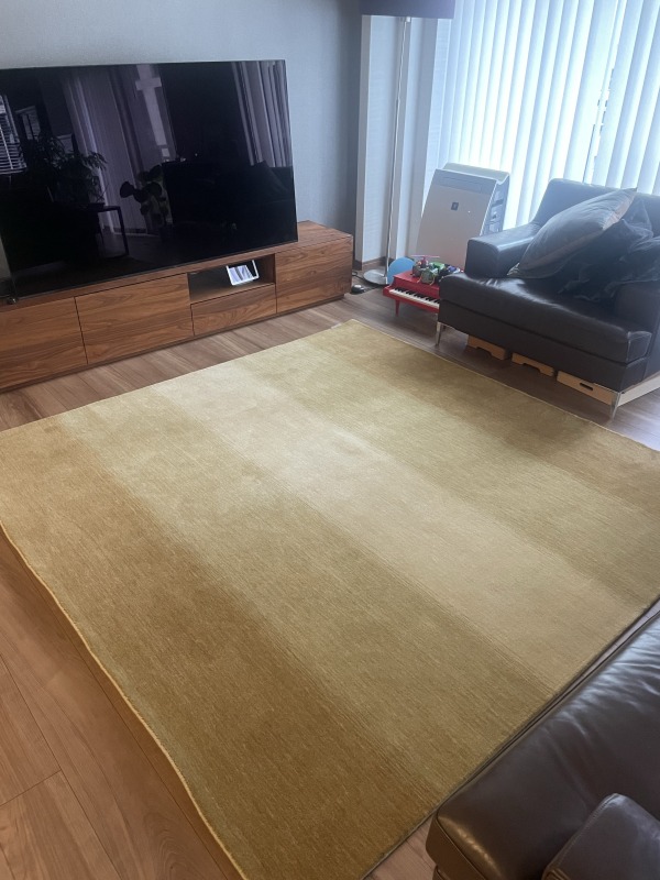 以前から気になっていて、一度実物を見てみようと訪れた店舗で一目惚れして購入を決めました。4歳の娘も触り心地と寝心地を試させていただきとても気に入り、いつ新しいじゅうたん届く?ととても楽しみにしていました。黄色い色味が派手だった かな?と少し心配だったのですが、リビングに敷いてみるとナチュラルでとても馴染んでくれました!アフターケアなどのご説明もとても丁寧にしていただき、安心して購入することができました。永く大事に使わせていただきます。