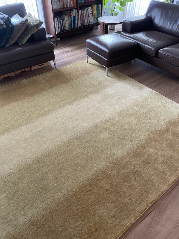 以前から気になっていて、一度実物を見てみようと訪れた店舗で一目惚れして購入を決めました。4歳の娘も触り心地と寝心地を試させていただきとても気に入り、いつ新しいじゅうたん届く?ととても楽しみにしていました。黄色い色味が派手だった かな?と少し心配だったのですが、リビングに敷いてみるとナチュラルでとても馴染んでくれました!アフターケアなどのご説明もとても丁寧にしていただき、安心して購入することができました。永く大事に使わせていただきます。