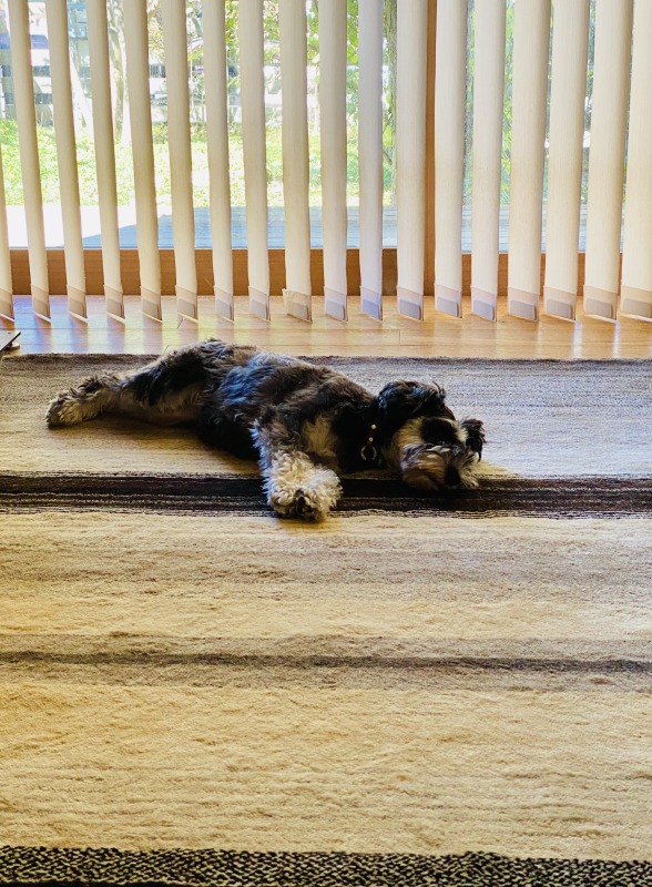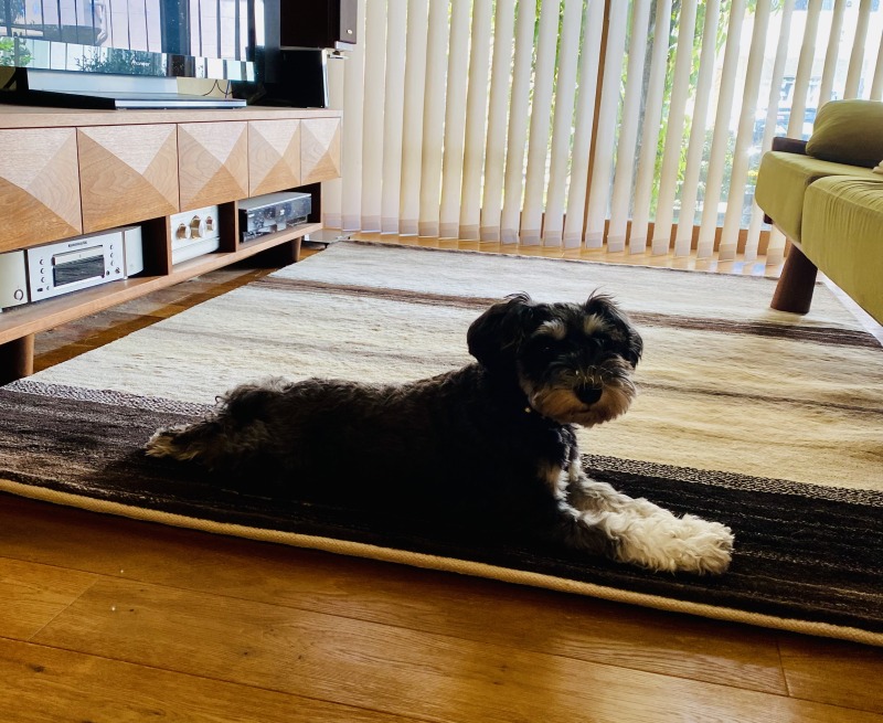百貨店のインテリアコーナーで初めて知りました。もう少したくさん見てから選びたいと思い取扱店へ行きました。たくさん見せていただいた中でも、特に手触りがなめらかで弾力のあるこちらのじゅうたんが気に入って購入しました。何よりすわり心地が良く快適ですし、わが家の犬たちもここで遊んだり眠ったり、とても気に入っている様子です。
