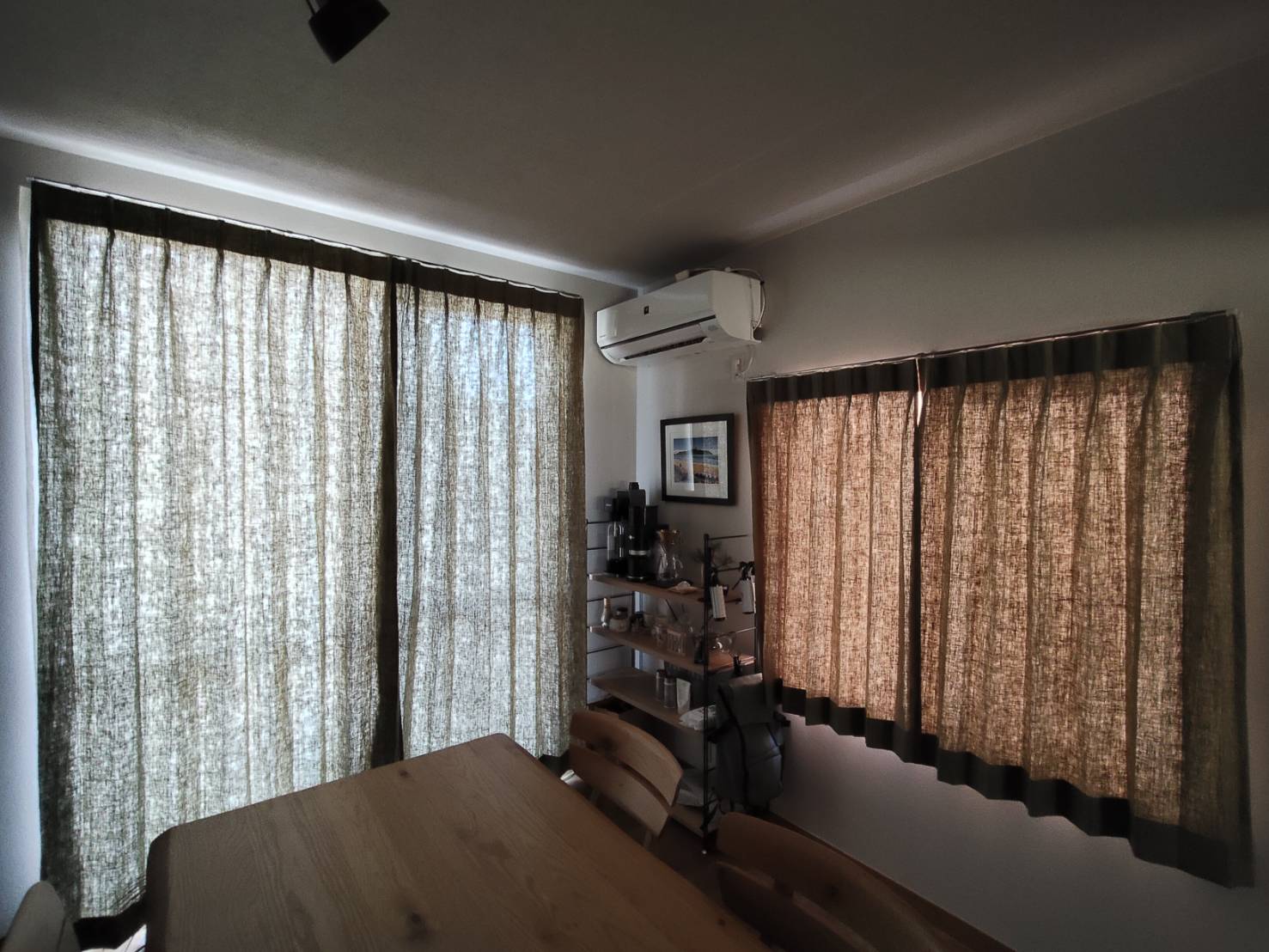 今回、引越し(賃貸の一軒家)に伴いカーテンを購入しました。仕事柄、自然な物に拘っており、以前マンションに住んでいた際も、麻や綿のカーテンを使用していました。前回は時間も無く、引越し業者さんが取り扱うカーテンを購入しましたが、麻や綿と一言で言っても、その背景によって、質感やエネルギー等の違いがある為、今回はコンセプトも含め、安心して使える物を探しておりました。以前使っていたものより使い心地もよく、また遮光性もあり、陽の光、部屋の光によってイメージが変わる為、一日中、楽しめます(*^^*)ありがとうございます!