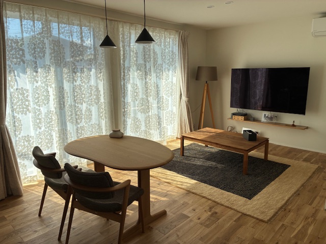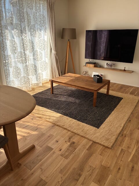 オークの床と、オークのダイニングテーブルにお気に入りのウォールナットテーブルが合うか本当に悩み、予約もせずお店にお伺いさせて頂きましたが、床材の色のサンプルなので丁寧にアドバイスを頂き、色々決められたのはとっても良かったです。