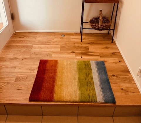 虹色のマットも、玄関が明るくなり素敵ですね。