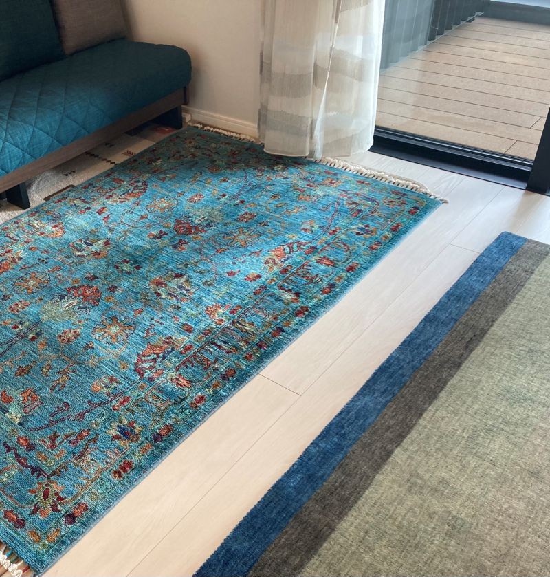 以前お選びいただいたウールラグに続き、今回はハグみじゅうたん、そして新作のガズニンをお求めくださいまして誠にありがとうございます。素晴らしい眺めのお住まいにシックなハグみじゅうたんと鮮やかなガズニンがとても美しく、いつまでも居たくなるような空間でした。また長くお使いいただいたご感想もお聞かせください。今後とも宜しくお願いいたします。